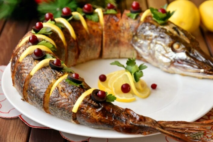 Фаршированная рыба - роскошное блюдо, достойное праздничного стола. Блюдо это достаточно сложное, надо знать много тонкостей, набраться терпением и достаточным количеством времени, но результат того стоит. Итак, давайте сегодня разберем какую рыбу лучше всего фаршировать? Большинство профессиональных поваров считают, что лучшая рыба для фарширования - белая рыба с плотным и толстеньким филе, размером не больше 30-35 см. ☝️☝️☝️Судак, щука, стерлядка, карп, сазан. Новичкам не стоит браться за гигантских осетров, у них другая роль - не еды, а украшения стола. У рыб - переростков обычно более сухая и жесткая мякоть, а у крупной речной рыбы - еще и специфический тинный запах. Особенно хороши для фарширования молоденькие щуки, в Сибире их называют " молочные" или " шнурки". Они совершенно не пахнут, у них мякоть нежная, но достаточно плотная, чтобы выдержать нагрузку фаршем. Красную рыбу традиционным способом, в коже, фаршировать не желательно. Мякоть лососевых очень нежная, и если мы доб