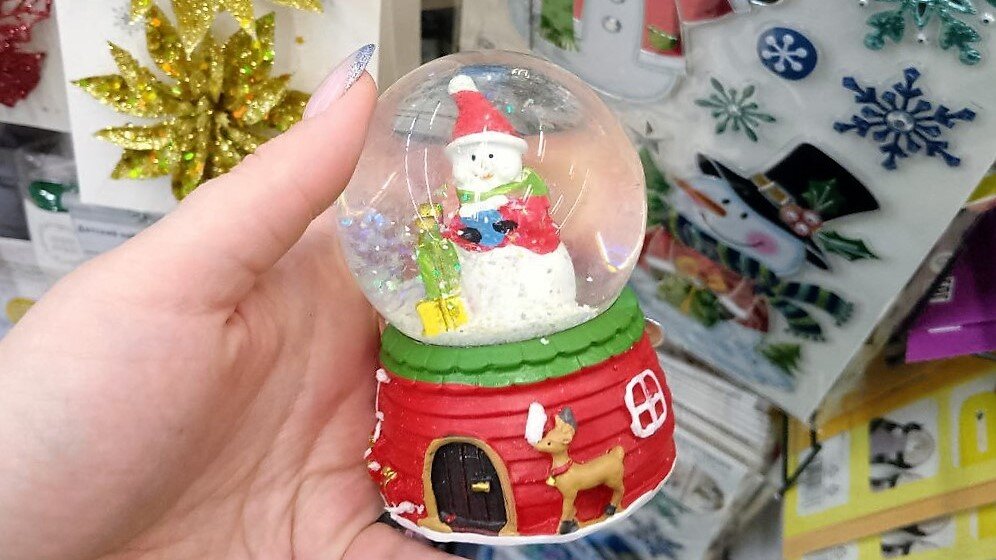 В детстве у нас такие штучки были очень популярны. Если сувенир потрясти, внутри шара поднимется облачко из блёсток. Красиво и точно понравится детям. Хорошее дополнение к сладкому подарку. Цена: 199 рублей.