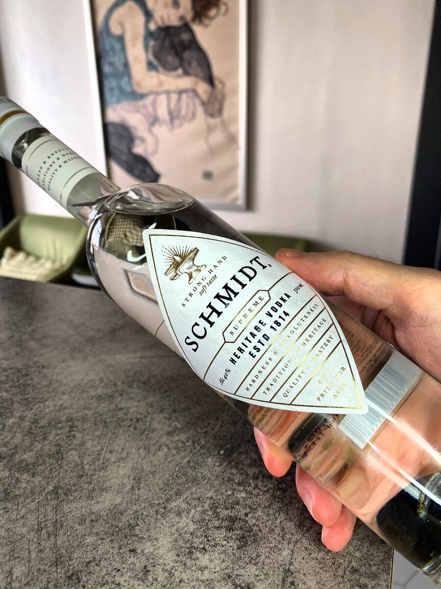 Всем привет! Давно мы не говорили о водке — давайте исправляться! Предлагаю сегодня обсудить водку на качественном зерновом спирте, да с правильным составом! С вами Алкоманьяк — устраивайтесь поудобнее, читайте внимательно и до конца, мы начинаем! Самое главное: злоупотребление спиртным может негативно сказаться на вашем самочувствии. Пейте ответственно. Сегодняшний гость Итак, сегодня у меня на дегустации очень интересная и необычная водка. Имя ей — Schmidt. Водку «Schmidt» (Шмидт) производят в Белоруссии. Это импортный продукт компании «Maxxium Russia». Бренд «Schmidt» рожден в семье немецких кузнецов по фамилии Шмидт, которые около 100 лет назад перебрались на территорию Белорусских земель. Потому сегодняшнюю водку можно назвать белорусской водкой с немецким акцентом. Ключевые особенности водки «Schmidt» Первая и главная, на мой взгляд, особенность этой водки — её состав: ● вода очищенная (добывается с глубины 220 метров); ● спирт категории «Люкс» (к слову, мой любимый водочный спир