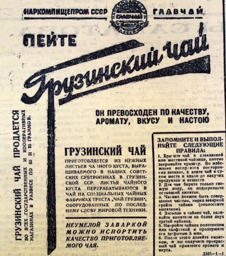 В советское время в чаеводство в Грузии вложили большие деньги, и вскоре производство грузинского чая процветало. Появились выдающиеся местные специалисты по чаю: так, например, Ксения Бахтадзе первой в мире вывела искусственные гибриды чая, выдерживающие зимние температуры до −25 °C! Но уже после 70-х годов начался стремительный упадок: ручной сбор заменили механическим, грубо нарушали технологию (например, собирали чай в сырую погоду в погоне за количеством), цитрусовые приносили больше прибыли, а потому начали вытеснять чай с местных плантаций.