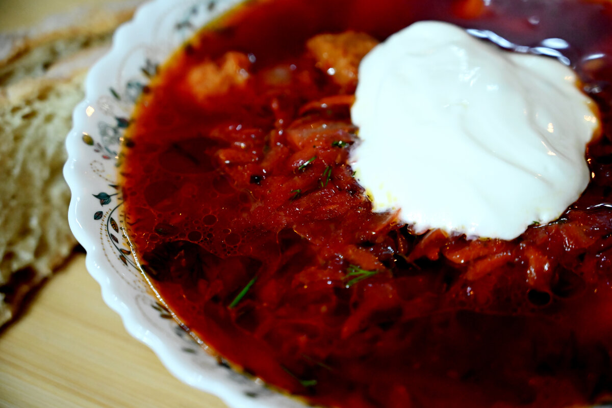 Ингредиенты: Мясо вымыть, нарезать и переложить в кастрюлю, залить холодной водой и всыпать 2 чайные ложки соли. Тем временем нарезать картофель и нашинковать капусту. Как бульон с мясом закипит - добавить к нему эти овощи :) Свеклу натереть на тёрке и тушить 20 минут на сковороде(средний огонь). По истечению 20 минут добавить томатную пасту, перемешать и тушить еще 5 минут. После этого добавить нашу заготовку к основе. Морковь натереть, а лук нарезать. Жарить до готовности 5 минут, добавить в борщ вместе со специями. Варить всё 5 минут. Выключить, добавить зелень и дать настояться борщу 5-10 минут под крышкой. Подаём со сметаной и хлебушком!!! Вкусно, просто и объедительно! :)