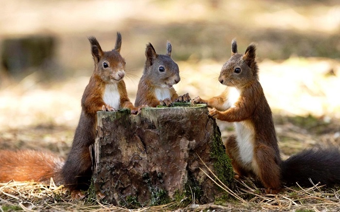 Троица белочек забралась по столбам на самую крышу и, стоя на краю, наблюдала за мной.