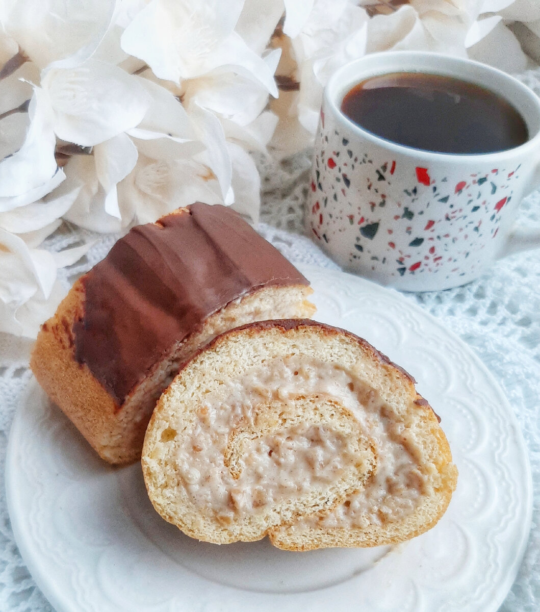 1️⃣7️⃣ Бисквитный рулет почти готов, уберите его в холодильник для застывания шоколада на часик и можно пробовать 😋
