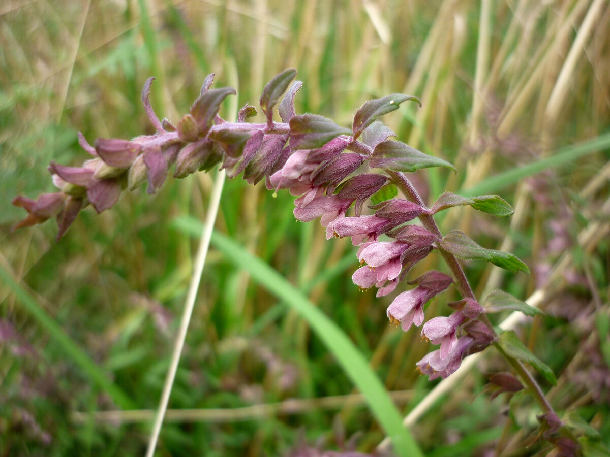 Познакомьтесь с Зубчаткой обыкновенной. Называют и зубчаткой красной из-за красноватого оттенка стебля, и зубчаткой поздней, так как зацветает в конце лета. Растение мало заметно в траве и не привлекает взор, хотя иногда достигает 50 - 80 см. Интернет дает не лицеприятную характеристику этому растению: «Сорняк, полупаразит… вид заурядный и неказистый». А вот мне его внешность показалась привлекательной своей непохожестью на другие, знакомые мне дикие растения. Розоватые малютки-цветочки с желтыми пыльниками в пазухах красиво вырезанных мелких листочков с зубчиками выглядят очень эффектно в обрамлении не менее красивых бордовых прилистников. На колосовидном соцветии все цветки «смотрят» в одну сторону. Растет практически везде: на лугу, у дорог, на пустырях, на опушках леса, в рощах, по берегам прудов и речек, на пастбищах. Обладает полезными веществами, хотя его лекарственные свойства широко не применяются, поскольку растение недостаточно изучено. Тем не менее, народная медицина не п