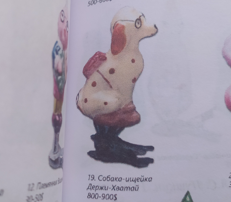 Вот если бы знали в свое время, то сегодня можно было бы озолотиться. Елочные игрушки 40-50-х годов - не ценили мы их. Потом вообще начали избавляться от "советщины", заменяя елочные украшения современными китайскими поделиями. И зря. Если посмотреть, сколько сегодня стоят игрушки на елку, изготовленные из стекла, то можно увидеть, что раньше люди были "богачами". Все эти фигурки, шарики, персонажи, всё это из того времени, когда Новый год был праздником для себя, а не для фотографий. Решил я поинтересоваться вопросом - сколько же сегодня стоят советские елочные игрушки по максимуму. На примере одной игрушки хотелось бы показать цены. Была выпущена серия игрушек по сказке "Чиполлино". Там много персонажей - Чиполлино, Лимон, Виноградинка, Редиска, Помидор, Адвокат, Апельсин, Земляничка, Груша, Порей, Крот, Тюлень, Фасоль и другие. И была среди них собака-ищейка по имени Держи-Хватай. Честно говоря, я уже и не помню, какую роль в произведении Джанни Родари играла эта собака, но имя