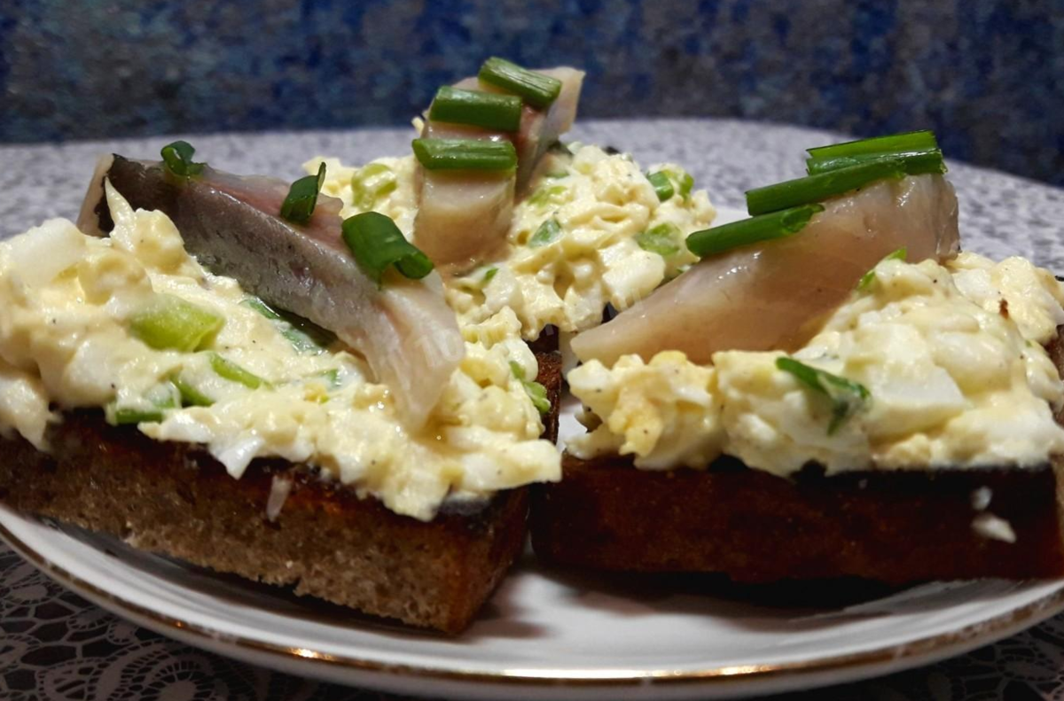 Закуска на праздничный стол и не только - гренки с яйцом и селедкой