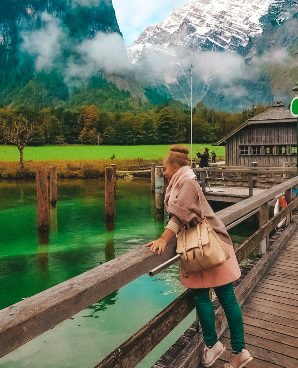 Мы приехали на чудесное озеро Кёнигсзе и все началось с безобидного дерева, на которое я залезла, чтобы получить красивые фото. Но, немного не учла, что было оно достаточно скользким и вот обратно спуститься не так то просто. Погода прохладная, вода +10, не май месяц как вы понимаете 😅 Владу пришлось зайти в воду и снять меня с этого дерева 🙈 Казалось бы все благополучно завершилось, но у озера были другие планы на меня. Гуляя по просторам, нашли отличное место для фото, необходимо было взобраться на пригорок и встать на край, для потрясающего фото аля Титаник. На что я сказала не-не, полезай-ка сам Влад туда, а я тебя сфотографирую 📸 Он встал на край, а я решила встать на огромный камень и взять ракурс со спины, но оступилась и полетела вниз, повиснув на колючей проволке, стою в ужасе с разрезанной рукой и кровищей. Благо у нас была аптечка и мы замотали мне руку 😬 Дальше было еще хуже 🙈 Неподалеку был чудесный большой луг, где паслись коровы, как из рекламы Milka😍 Мне срочн