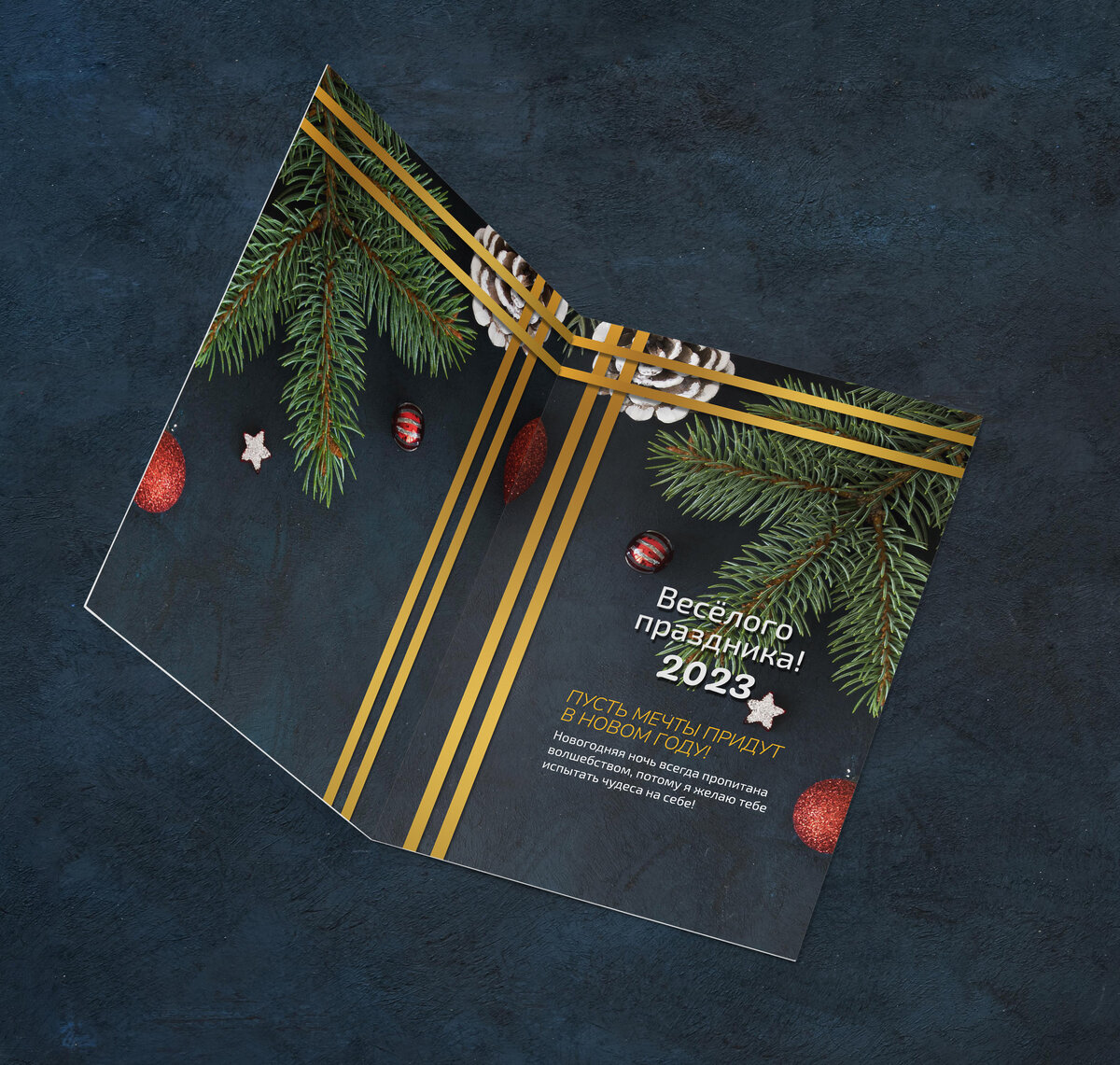 Открытка на Новый Год с современным дизайном, который отличается своей строгостью, где нет ничего лишнего. При этом не теряется и праздничное настроение, благодаря новогодним украшениям и тёплым поздравлениям. Такую открытку можно заказать на нашем сайте: https://trt74.ru/catalog/otkrytka Разворот открытки Обложка и общий вид Картинка с поздравлением для соц. сетей Текст поздравления для копирования: Весёлого