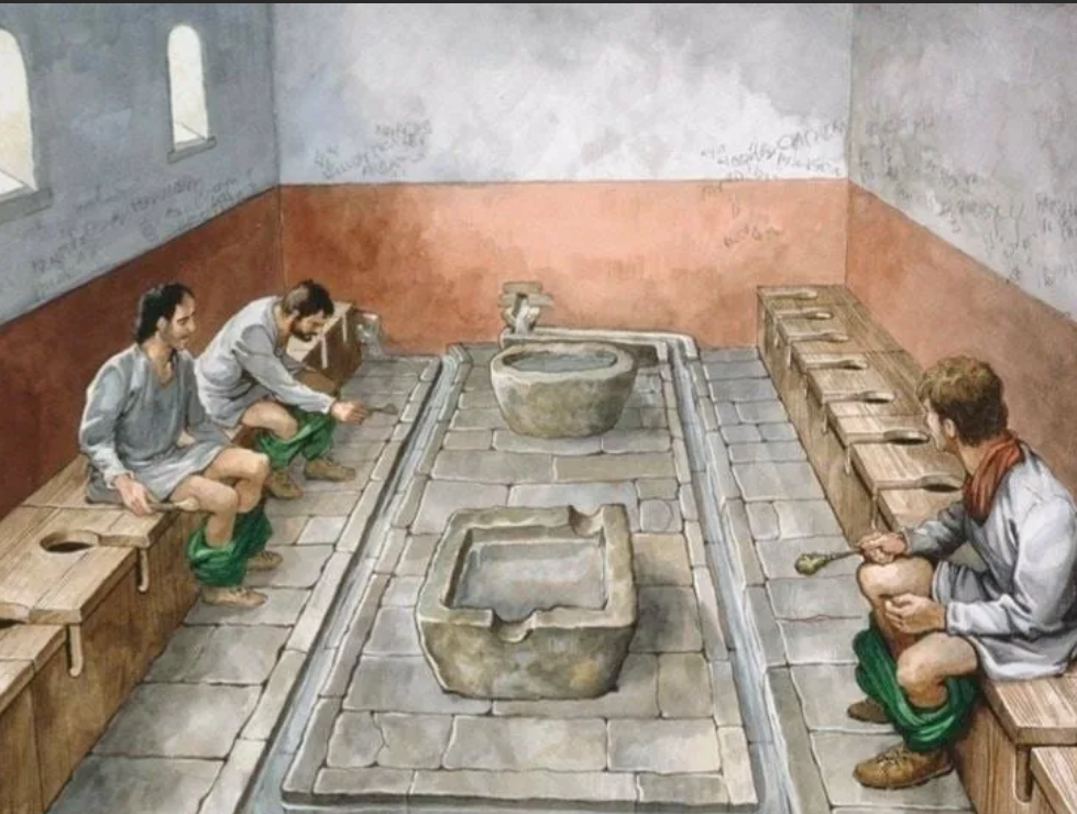 Когда-то использование туалета стало таким же социальным явлением, как посещение бани в Древнем Риме. Сантехника была спроектирована таким образом, чтобы задерживать мусор во время смыва.