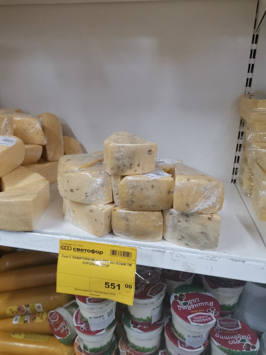 Так-так, что мы видим в календаре, когда с утра заглядываем в него? Как минимум то, что наступила зима, а как максимум - мы еще и задумываемся о том, что совсем скоро нас ждет встреча с новогодними праздниками. И это здорово ощущается даже при походе в магазины за продуктами, ибо повсюду уже и подарки, и гирлянды, и елочные шарики, и всякая всячина, что может пригодиться. Я заглянула и в "Светофор", рассчитывала подобрать что-то антуражное, но в нашем городе были разве что не особо качественные гирлянды и пара вариантов мишуры. Более - ничего. Вот и пришлось засматриваться на другие новинки, о которых, собственно, я и хочу рассказать в этом обзоре. Показываю чем магазин пополняет свой ассортимент перед праздниками: Сырные полки как будто с каждым разом становятся все шире и шире. Уж как сильно я люблю подобную продукцию, но тут я все равно не успеваю выбрать одного фаворита, так как каждый раз хочется приобрести то, чего еще не пробовала. И ладно бы просто разные производители попадали