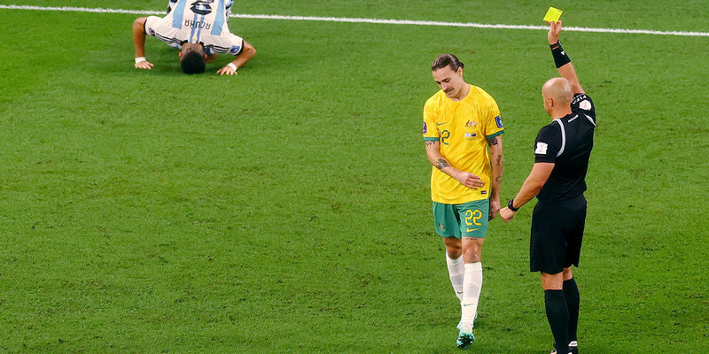 Аргентина — Австралия — 0:0. Австралиец Ирвин получил желтую карточку на 15-й минуте матча 1/8 финала ЧМ‑2022