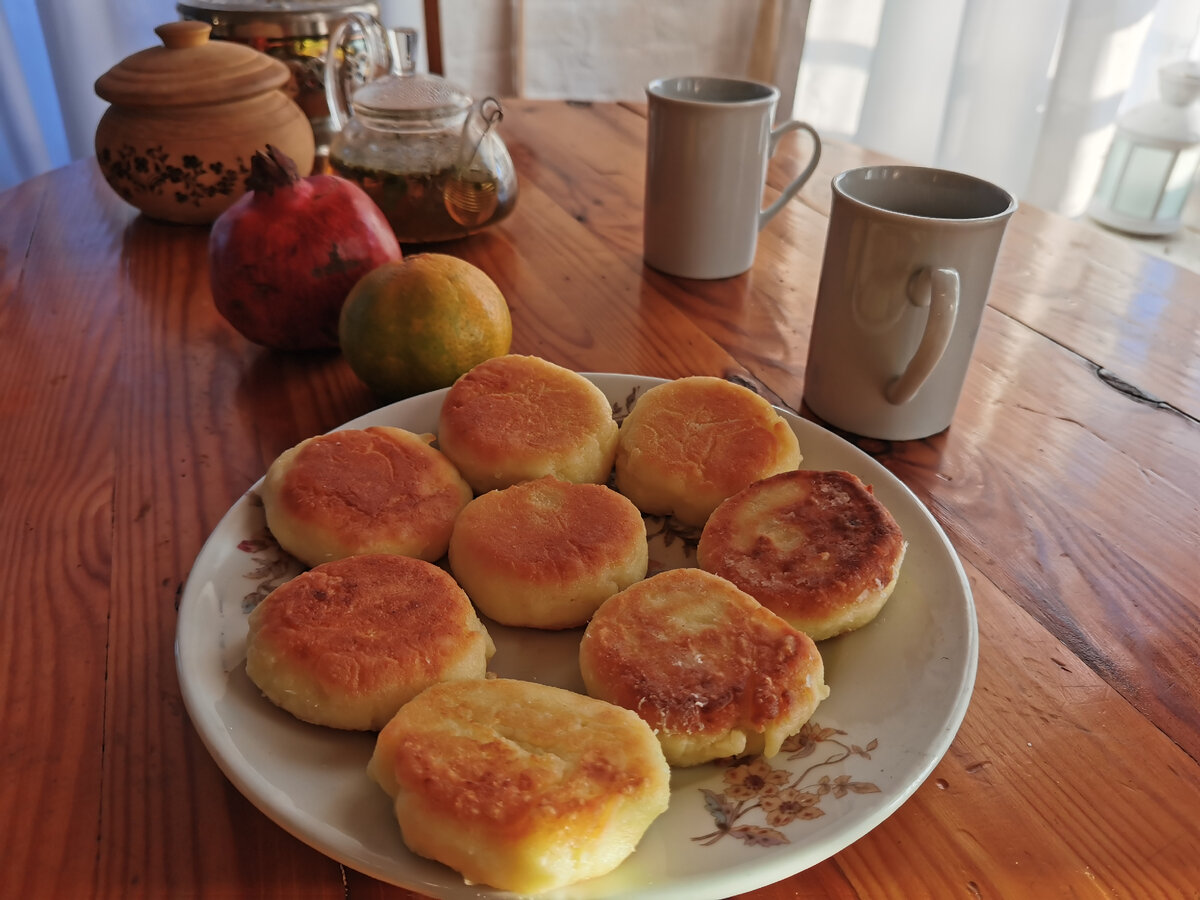 Здравствуй, дорогой читатель моего небольшого деревенского блога «На Зелёной и Липовой улице». Я обещала ввести новую рубрику «Будни на хуторе», где иногда буду рассказывать о жизни на хуторе, чем мы занимаемся, что готовим. Что ж, пора действовать. Утро, пожалуй, началось, с уже ставшей нашей маленькой традицией − растопки печи и приготовления сырников. Мы предпочитаем классический вариант: творог, яйцо, щепотка соли, немного сахара, манка и мука. Ничего лишнего. И конечно же, свежесваренный кофе из кофеварки. Куда без него? Заодно заварили вкусный чай «Симфония Кавказа», который я привезла из Пятигорска. В его состав входят эхинацея, душица, зверобой, чабрец, розмарин, лаванда, шалфей, репешок, мята перечная и лепестки цветов. Чай имеет очень насыщенный вкус и тонкий аромат. Оставили его чтоб настоялся до обеда. Михаил после завтрака занялся делами на улице, а я в доме приборкой. Решила начать с кухни. Перемыла всю посуду. Заодно замариновала на ужин голень домашней курицы, д