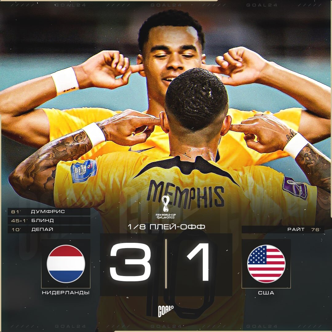 У команды США были все шансы на победу над Нидерландами. Первую возможность имел Пулишич в начале матча, отправь он мяч в ворота, игра сложилась бы по-другому сценарию. В играх на вылет, не забиваешь ты, забьют тебе. Нидерландская команда использовала практически все свои моменты, для взятия ворот, плюс помогли ошибки защитников США. Нидерланды показали совсем другую игру по сравнению с игрой в группе. Посмотрим на них в 1/4 финала, где они встретятся с командой Аргентины. Лучшим игроком матча стал Дензел Дюмфриз. Он отдал 2 результативные передачи и забил гол. Провел отличный матч.Через его фланг США практически ничего не смогла создать. Он даже пытался спасти свои ворота, но не дотянулся до мяча. Как Вам игра🇱🇺?пишите свои комментарии🖊👍🤙