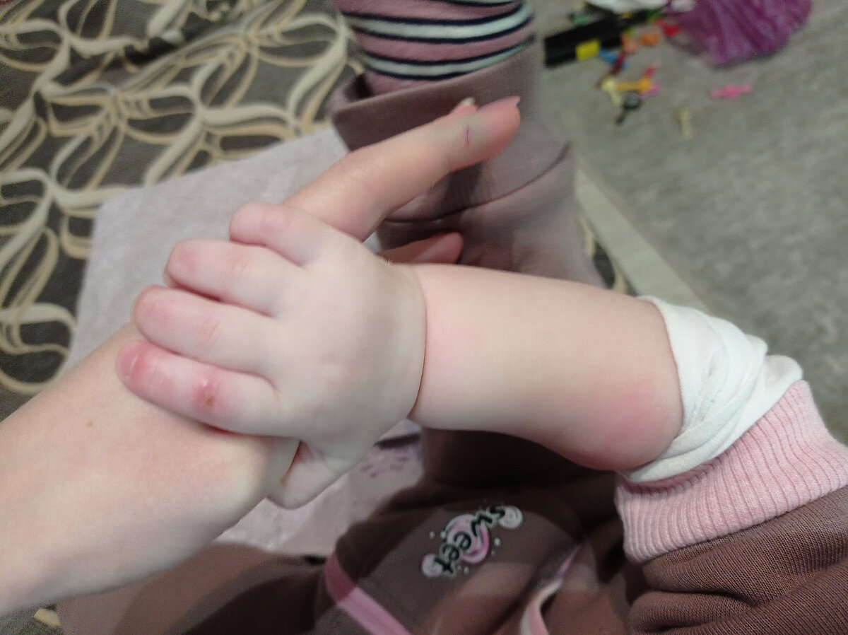 Мы не стали ждать окончания третьей недели и решили , что пора уже снимать. Ева во всю ходит на четвереньках, опирается на руку и берёт предметы. В пятницу пробило 2 недели и в субботу мы это сделали. Сняли лангетку. Так как гипс не на всю руку, а только на половину, я просто разрезала бинт. После снятия я ужаснулась, как мой ребёнок не плакал всё это время, а был бодр и весел. Указательный пальчик Евы был натерт до гноя. Вся рука была красная, а на большом пальце была натертость. Медсестры, видимо, сильно на нас обозлились, когда перекладывали гипс и вот к чему это привело. Ева чувствует себя нормально, даёт трогать руку и привыкает к старым ощущениям, что снова может брать предметы обеими руками. Лангетку я решила не выкидывать, я та ещё собирательница. Написала дату накладывания и снятия, и положила в коробку, которую люблю пересмотреть и повспоминать. Всем спасибо, кто желал нам скорейшего выздоровления. Я благодарна вам за вашу поддержку❤берегите деток🙏