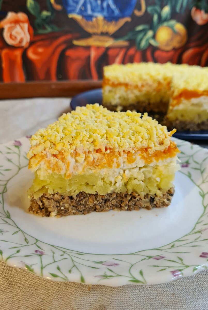 Ингредиенты: Отварить: картофель ( я варю без кожуры, так вкуснее), морковь, яйца. Шпроты вытаскиваем из банки, отрываем хвосты и разминаем вилкой. Картофель, морковь трём на тёрке. Лук нарезаем мелкими кубиками. Яйца отделяем белки от желтков, белки мелко режем. Берем кулинарное кольцо ( можно и без него) и начинаем выкладывать слои. Все слои кроме первого (шпроты), смазываем майонезом. Шпроты... Картофель... Лук... Яйца(белок)... Морковь... Яйца (желток) трем сверху на мелкой терке... Снимаем кулинарное кольцо, и наш салат готов Приятного аппетита !!!