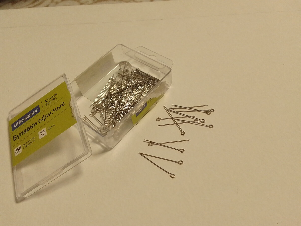 1 Офисные булавки. Можно иголки от вышитых наборов, зубочистки, вилки, спицы, шпагu и даже кoпья - но лучше булавки. Они нужны для ровного удержания вышивки, пока не стянете канву на изнанке.