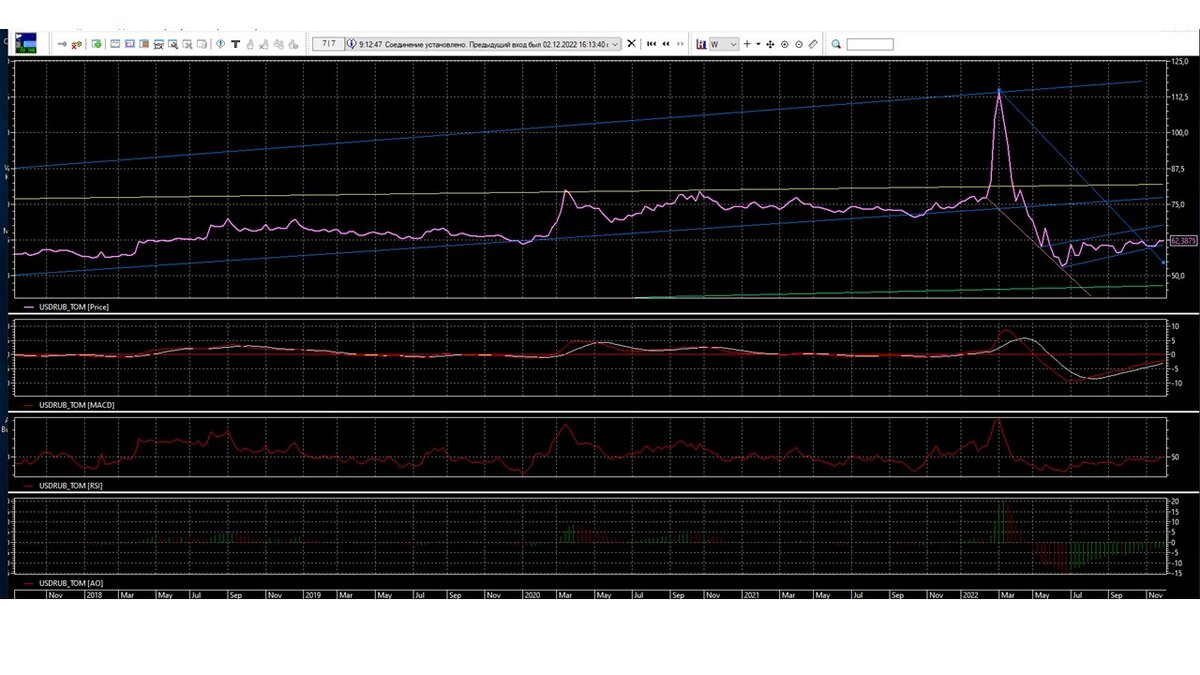 4. К середине декабря не получается пробить уровень 66,0, медленно катимся вниз, завершение года может произойти в коридоре 60,0-64,0 или ниже.