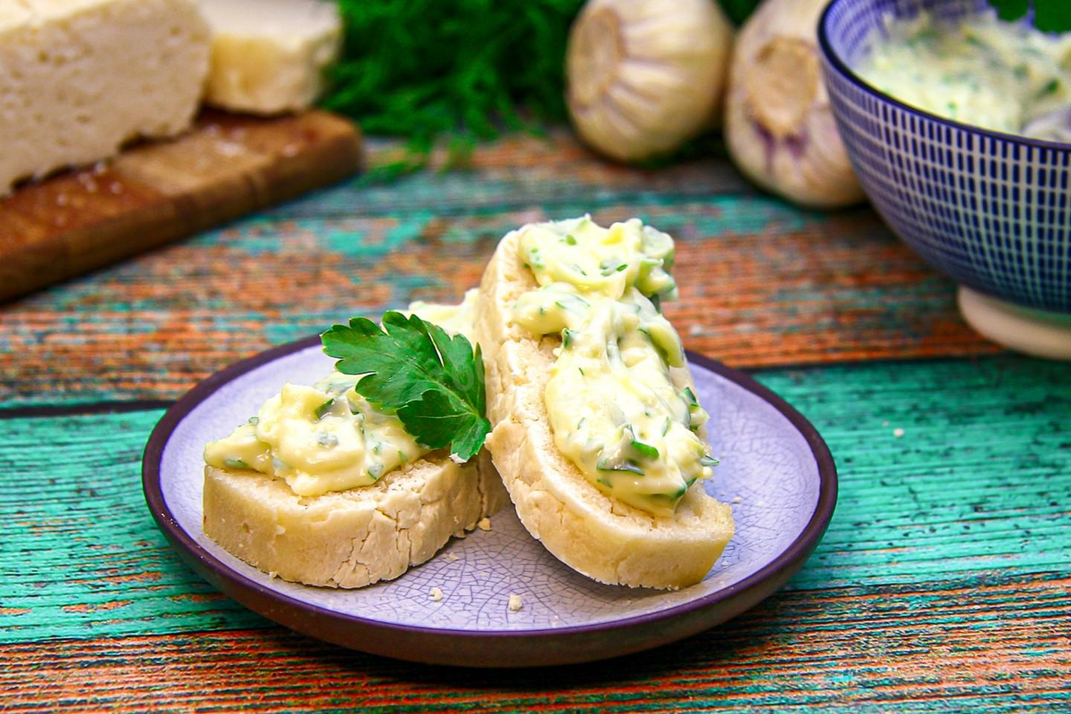 ПОШАГОВОЕ ПРИГОТОВЛЕНИЕ Время приготовления: 5 мин ШАГ 1: Как сделать чесночное масло? Для приготовления чесночного масла необходимо подготовить: мягкое сливочное масло, зелень петрушки, соль и чеснок. Масло заранее достаньте из холодильника. Примерно за 20-30 минут до начала приготовления по этому рецепту. Для ускорения процесса размягчения масла можно нарезать его на мелкие кусочки. ШАГ 2: Мягкое сливочное масло переложите в глубокую миску и разомните его вилкой. Я выбрала неудачную посуду: мне было не очень удобно работать вилкой. Лучше всего подойдет посуда с более-менее плоским дном. ШАГ 3: Петрушку вымойте под проточной водой и встряхните от лишней влаги. Зелень мелко нарежьте. Петрушку можно заменить на укроп или кинзу. Чтобы сливочная намазка получилась более нежной, жесткие стебли у зелени лучше удалить. ШАГ 4: Чеснок очистите от шелухи и натрите на мелкой терке. Так он лучше отдаст свой аромат и вкус маслу. ШАГ 5: Посолите масло по вкусу. Кстати, это совсем необязат