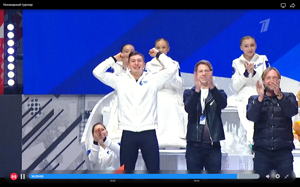 Кратко делюсь ходом соревнований и впечатлениями от командного турнира. Выступали 3 команды: Плющенко, Мишина и Тутберидзе. Но спортсмены в их командах были не только из их тренерского штаба. Состав команды Плющенко: Состав команды Мишина: Состав команды Тутберидзе (и зачем её так отфотошопили?): Раунд 1 Мишина и Галлямов выполнили чисто тройную подкрутку. Бойкова и Козловский пошли на четверную, но сделали грязнее. Тарасова и Морозов сделали тоже четверную, но чище. В прыжках Мишина и Галлямов зашли на тройной лутц, но Саша приземлил его с ошибкой. Чистый риттбергер от Бойковой и Козловского оценили выше. Тарасова и Морозов прыгнули тройной тулуп, но выполнили не идеально - не синхронно и с не очень аккуратным приземлением Жени. Выброс-риттбергер от Мишиной и Галлямова вышел чисто. Бойкова и Козловский сделали чисто лутц. Тарасова и Морозов выполнили чисто риттбергер. Время вторых выбросов. Повторять уже исполненный нельзя. Мишки чисто сделали флип. Бойкова и Козловский пошли на четв