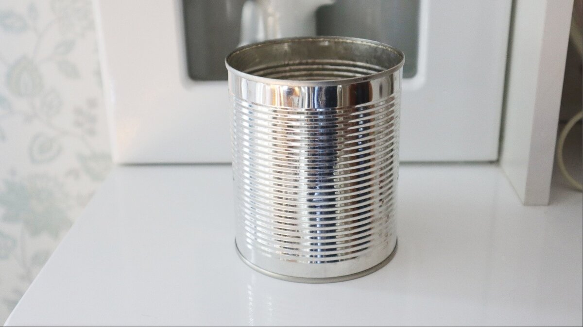 Можно неплохо пристроить в интерьере жестяные банки от консервированных продуктов. Чаще всего они становятся местом хранения карандашей и ручек или горшком для комнатных цветов.