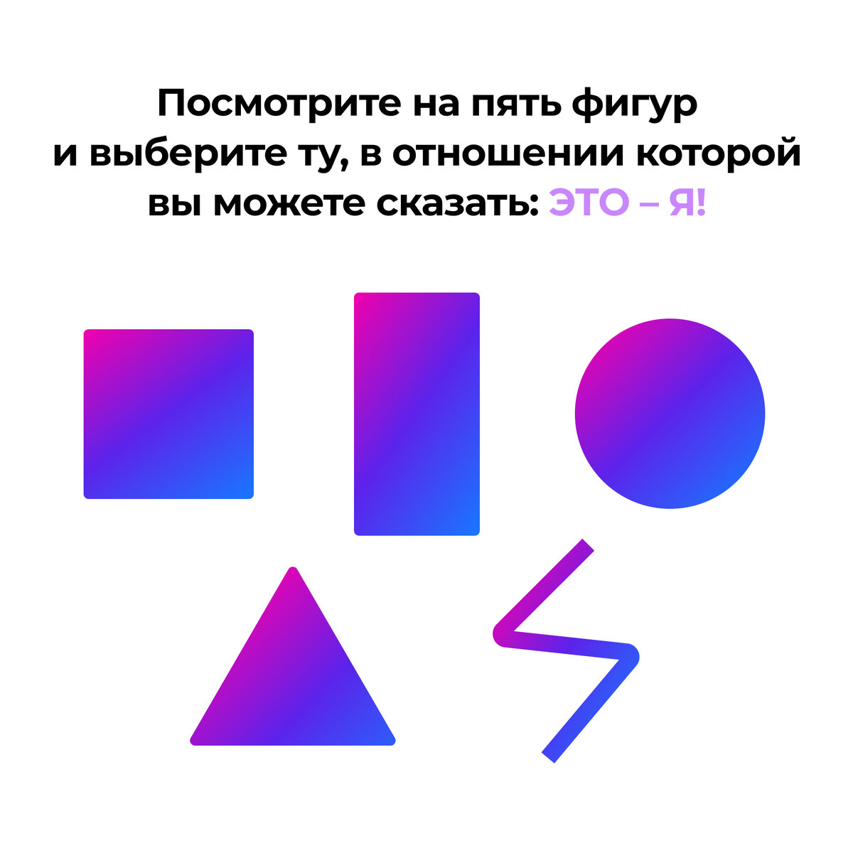 Целью сегодняшнего теста будет определение формы или типа личности, а также характеристика личных качеств, особенностей поведения и профессиональных предпочтений 🙌 Выберите фигуру, которая больше привлекла вас ❗️Запишите ее название под №1, а оставшиеся проранжируйте в порядке вашего предпочтения и запишите их названия под соответсвующими номерами 1️⃣ Какую бы фигуру вы ни поместили на первое место, это – ваша новая фигура или субъективная форма. Она определяет ваши главные, доминирующие черты характера и особенности поведения ➡️ Остальные четыре фигуры – это своеобразные модуляторы, которые могут окрашивать ведущую модель вашего поведения 🫣 Последняя фигура указывает на форму человека, взаимодействие с которым будет представлять для вас наибольшие трудности Результаты теста можете посмотреть в галерее, листайте👇 #тестыNovamind #сетевойбизнес #сетевоймаркетинг #психология #самопознание 👇 Делитесь в комментариях, откликается ли вам то, что вы выбрали?