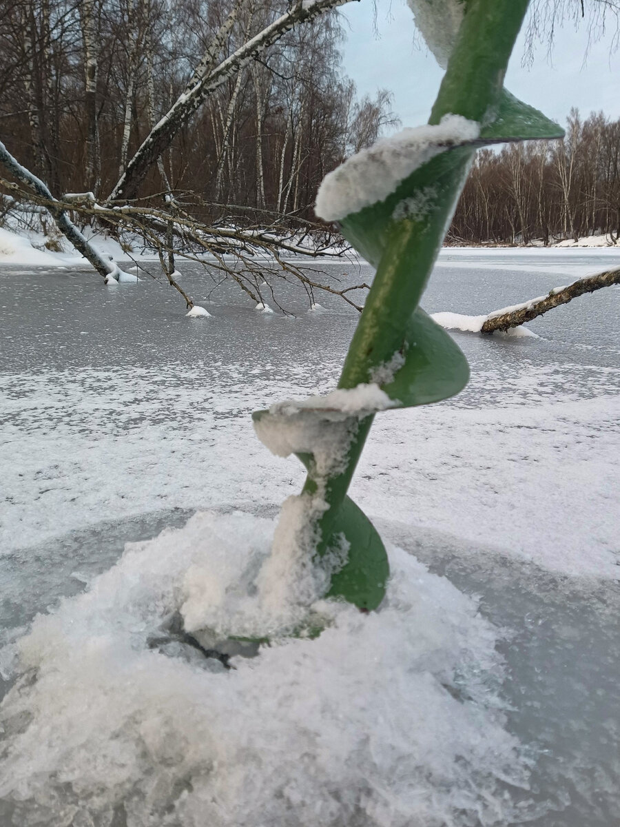 Калуга. Пока лёд на реке нестабилен, тренируюсь "мормышить" на озере.