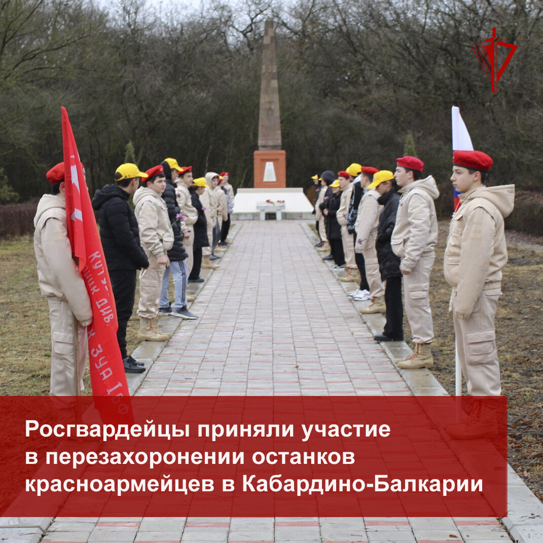 #НаСтражеПамяти Сотрудники вневедомственной охраны по Терскому району Кабардино-Балкарии в рамках акции Росгвардии «На страже памяти» приняли участие в церемонии захоронения останков одиннадцати красноармейцев, найденных на территории Терского района.