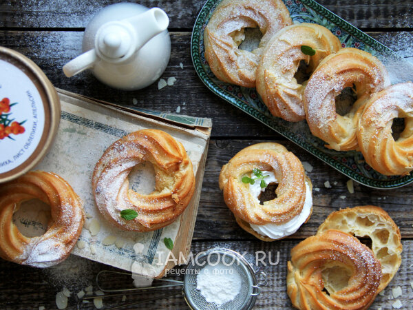 Такие калачи будут очень эффектно смотреться на праздничном столе. Их можно подать в качестве закуски, наполнив несладкой начинкой или в качестве десерта со сливками, например. Тут уже дело вкуса и фантазии. Несколько примеров несладких начинок: Примеры сладких начинок: взбитые сливки с сахаром, джем, заварной крем, шоколадный крем, сгущенка. Дополнительно можно положить дольки фруктов или ягод. Заварные калачи Такие калачи вкусны и сами по себе😋😉 📝ПРИГОТОВЛЕНИЕ: 1. Соедините в кастрюльке воду, масло и соль. Доведите смесь до кипения. Всыпьте муку и, хорошенько перемешивая массу, заварите тесто. А затем дайте ему постоять 5-10 минут. 2. Слегка взбейте в отдельной мисочке яйца. После чего вводите их частями в тесто и взбивайте миксером до однородного гладкого состояния теста. 3. Вот такое тесто должно у вас получиться. 4. Выложите с помощью кулинарного шприца заготовки калачей на пергамент. Дополнительно можно слегка побрызгать заготовки молоком и посыпать миндальными лепестками. 5.