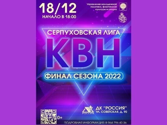 Поклонников хорошего юмора приглашают на самое смешное шоу года Во Дворце культуры «Россия» в Серпухове пройдут игры финала Серпуховской лиги КВН. Зрителей ждёт искромётный юмор, лучшие новогодние шутки, красочные сценические миниатюры. Самые яркие команды весёлых и находчивых будут бороться за звание лучшей. Шоу состоится 18 декабря, начало в 18-00. Для того, чтобы стать зрителем и болельщиком, необходимо пройти процедуру регистрации, заполнив специальную форму. Найти её можно здесь https://forms.gle/kZU4VoZ1tWKaHEv17. Автор: Татьяна Гурышкина