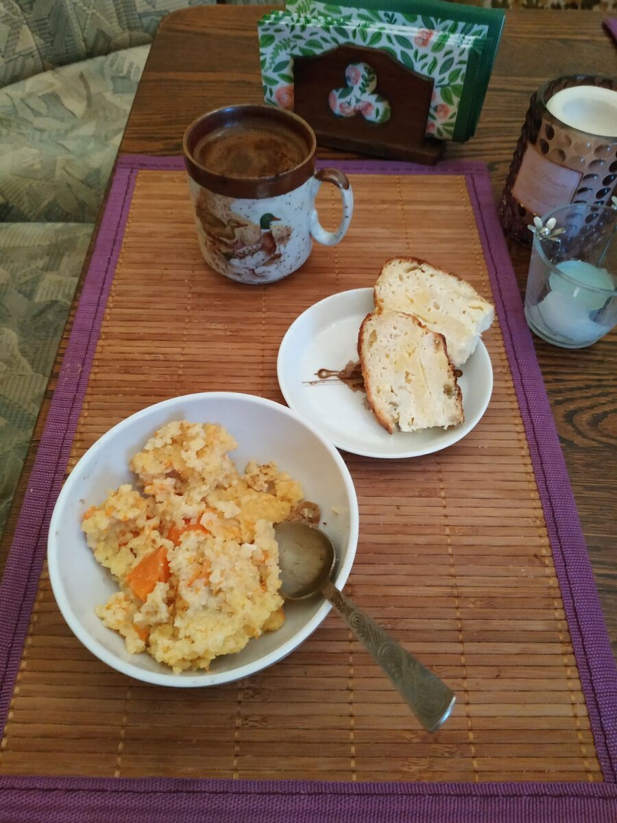 Но на завтрак зато весёлая каша и кофе в новой чашке. Взяла с собой в постель и смотрела какой-то бестолковый французский детектив, ничуть не вникая в суть. Как же хорошо быть дома!