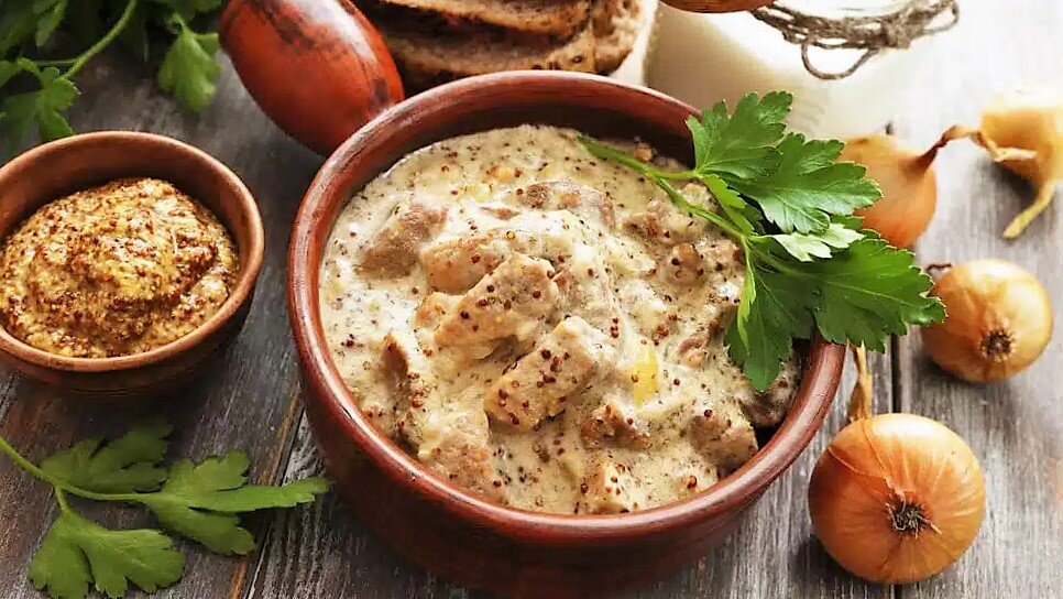 Пошаговый рецепт: Делюсь рецептом свинины на сковороде с луком в горчичном соусе: