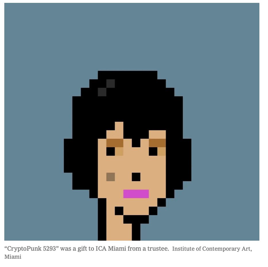 Институт современного искусства в Майами стал одним из первых учреждений, который начал коллекционировать NFT: несколько лет назад он принял в дар от своего попечителя работу CryptoPunk 5293. С тех пор в коллекции института добавилась еще парочка NFT. Другие музеи также приобретают NFT. Некоторые из них, такие как галереи Уффици во Флоренции и Британский музей, чеканят и продают NFT из произведений, находящихся в их коллекциях. А художников поощряют в их усилиях по созданию цифрового искусства. Но даже несмотря на то, что музеи занимаются NFT, рынок для них и для криптовалют, которыми они торгуют, резко упал. Объемы торгов снизились на 97 процентов по сравнению с максимумами, достигнутыми в январе. Последним признаком кризиса на рынке стала криптовалютная биржа FTX, объявившая о банкротстве 11 ноября. Тем не менее, сторонники утверждают, что у NFT есть неоспоримые преимущества, например, то, что шифрование на блокчейне делает подделку цифровых работ невозможной. Каждая уникальная работ