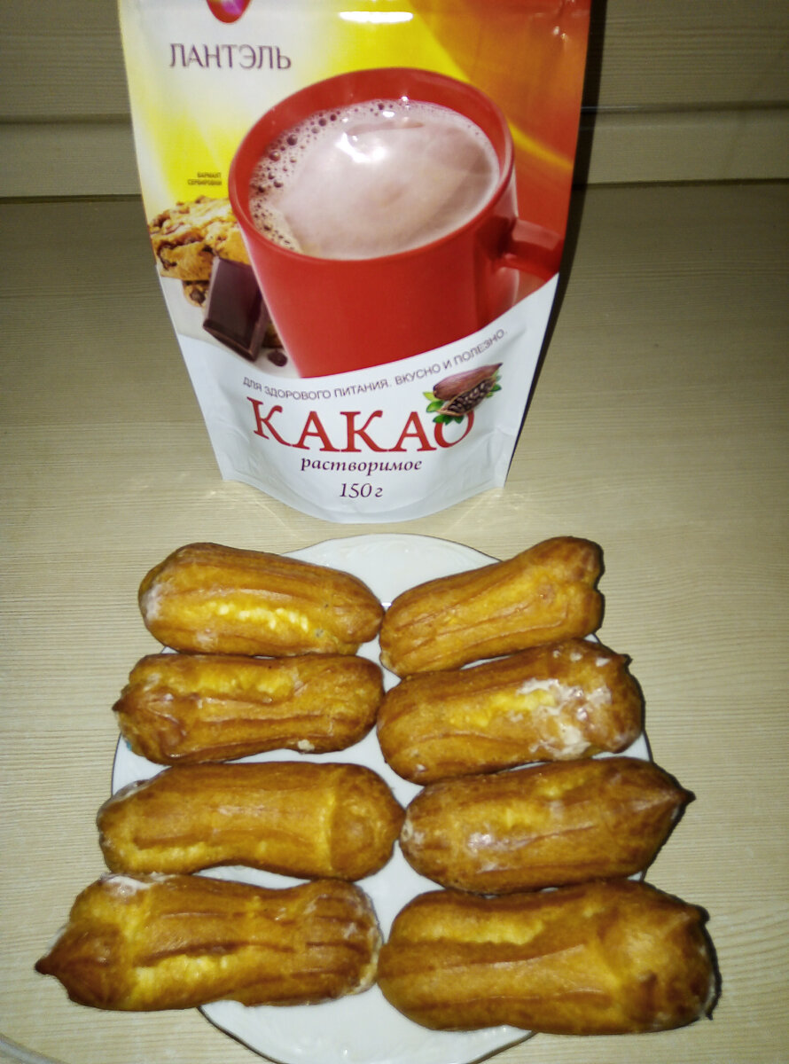 Сегодня в выходной день на завтрак решила себя немного побаловать пироженками с какао. Очень вкусно😋, для фигуры, конечно, не совсем полезно😁! Но иногда можно 😉!