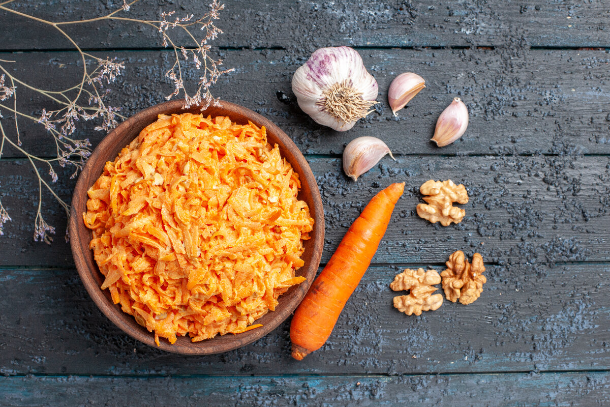 - Соединяем морковь, чеснок, майонез в миске, добавляем соль перец по вкусу (сам лично соль и перец не добавляю, но это уже на ваш вкус).