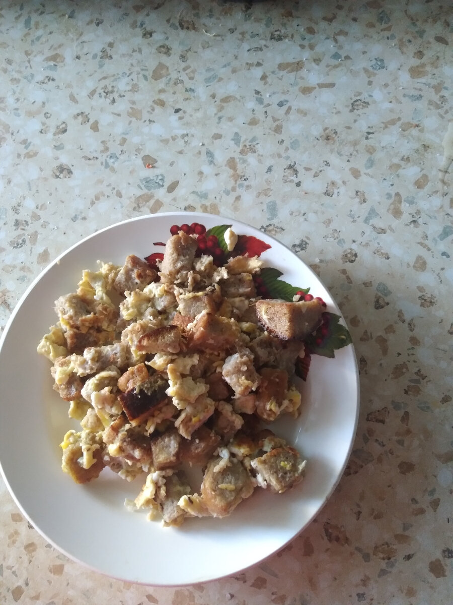 Пока мои благополучно посапывали до обеда,я успела перегладить белье и 2 раза запустить машинку. Рано я радовалась,что обед готов. Дети суп есть не стали(вот такие они...не любят вчерашний суп...) Пришлось готовить им "ленивые"яйца. Половинку чёрного нарезаем кубиками,поджариваем,заливаем яйцами,соль,специи по вкусу.Доводим до готовности постоянно помешивая.Всего 10 минут и готово. Не знаю,как кому,а нам нравится.Со сладким чаем очень вкусно. Хлеб-20 рублей,яйца 10 штук-40 рублей.Всего 60 рублей. Быстро,вкусно,недорого. Мы с мужем ещё и супчик поели.Кот тоже не оказался,рыбный как никак. А, вы, как в выходные любите поспать?напишите в комментариях.