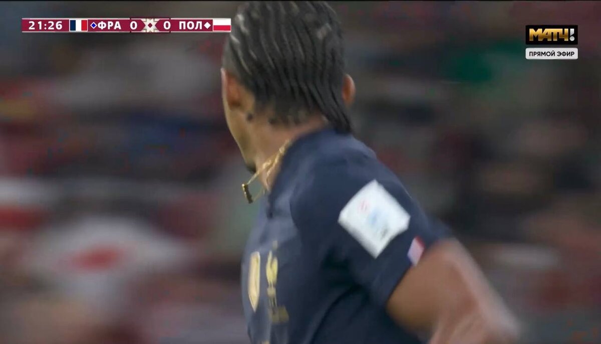 Кажется, найден главный модник чемпионата мира: защитник сборной Франции Жюль Кунде почти тайм против Польши играл с несколькими золотыми цепями на шее и подвеской.