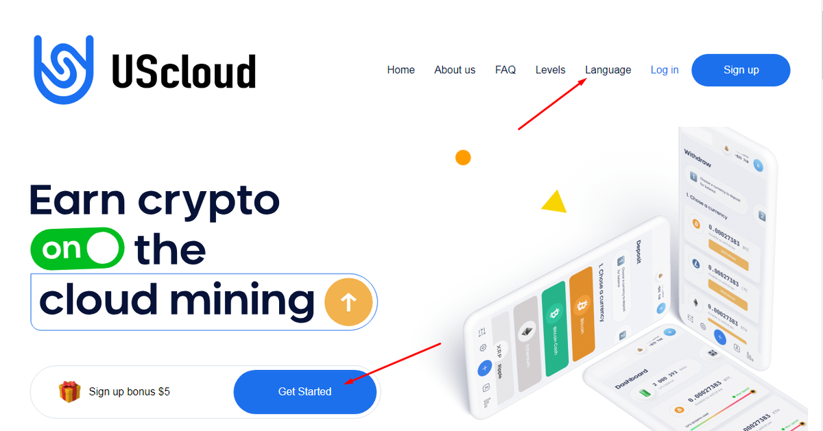 Итак, друзья, я хочу поделиться с вами очень хорошей платформой, на которой вы можете зарабатывать криптовалюту (USDT), без вложений, и очень просто. Еще раз повторяю, вы не вкладываете своих средств, таким образом нет никакого риска, и вывод на кошельки работает, это проверено. Платформа называется «USCLOUD». USCLOUD - это гарантия ежедневной прибыли, а именно 1%-3% за 24 часа. Вывод средств гарантированно поступит на ваш счет в течение 48 часов. Также каждый пользователь, зарегистрировавшийся на платформе, получит бонус в размере 5 долларов после регистрации. Что нужно сделать, чтобы начать зарабатывать криптовалюту? Перейдите по ссылке ниже, чтобы зарегистрироваться. РЕГИСТРАЦИЯ При необходимости измените язык платформы, как показано на скриншоте.