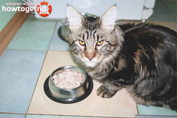 Здоровье мейн-кунов напрямую зависит от качества продуктов, составляющих их рацион. Подбирая меню для кошки, нужно учитывать возраст и вес питомца. Кормить мейн-кунов можно как натуральными продуктами, приготовленными хозяевами, так и специальными сбалансированными сухими кормами. Говядина (телятина). Котятам и взрослым кошкам можно давать сырое перемороженное мясо. Для котят возрастом 4-8 месяцев мясо необходимо очень мелко измельчить и ограничиться дневной порцией в 50 грамм, для кошек старше одного года – 100-120 грамм. Куриное мясо. Котятам младше трех месяцев нежирную куриную грудку необходимо отваривать. Куриные окорочка можно включать в рацион котят с четырех месячного возраста. Куриные и говяжьи субпродукты. К ним относятся: печень, почки, сердце, легкие. Эти продукты используются для кормления мейн-кунов, начиная с годовалого возраста и только в отварном виде. Субпродукты усваиваются примерно на 90% и чрезвычайно полезны. В дикой природе кошки большую часть питательных веществ