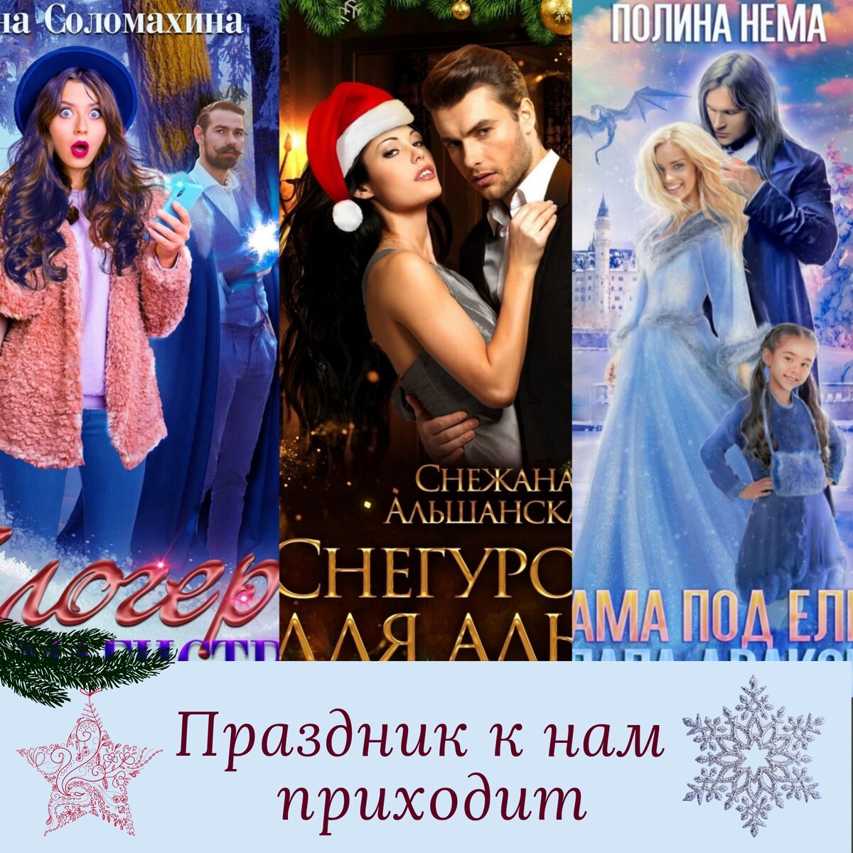 Приветствую) До нового года всё меньше времени. Праздники всё ближе, скоро мы будем кушать любимые салаты, любоваться ёлкой и гирляндами, и вдыхать запах мандарин. Ну а книги с новогодней темой помогут нам приблизить этот праздник ещё ближе. Я оставила для вас аннотации и ссылки на книги. Если вы что-то читали или в вашем арсенале есть книги про новый год, то пишите. Приятного чтения! 📚 1. "Блогер для магистра" Анна Соломахина Аннотация: Меня зовут Карина Белова и я известный блогер. У больше миллиона подписчиков на Ютуб и Инстаграм. И ведь никто даже не догадывается, что всей этой ширмой в виде яркого макияжа и неординарного поведения, скрывается обычная студентка с журфака. Я и подумать не могла, что во время предновогоднего стрима я попаду в другой мир и познакомлюсь с настоящим магом! Трансляция идёт, комментарии сыпятся, а маг смотрит недовольно. И я не знаю, как мне вернуться обратно... Вас ждут: 🎄 бойкая попаданка 🎄 крутой маг 🎄 драконы и оборотни ⭐ 579 место в категории п