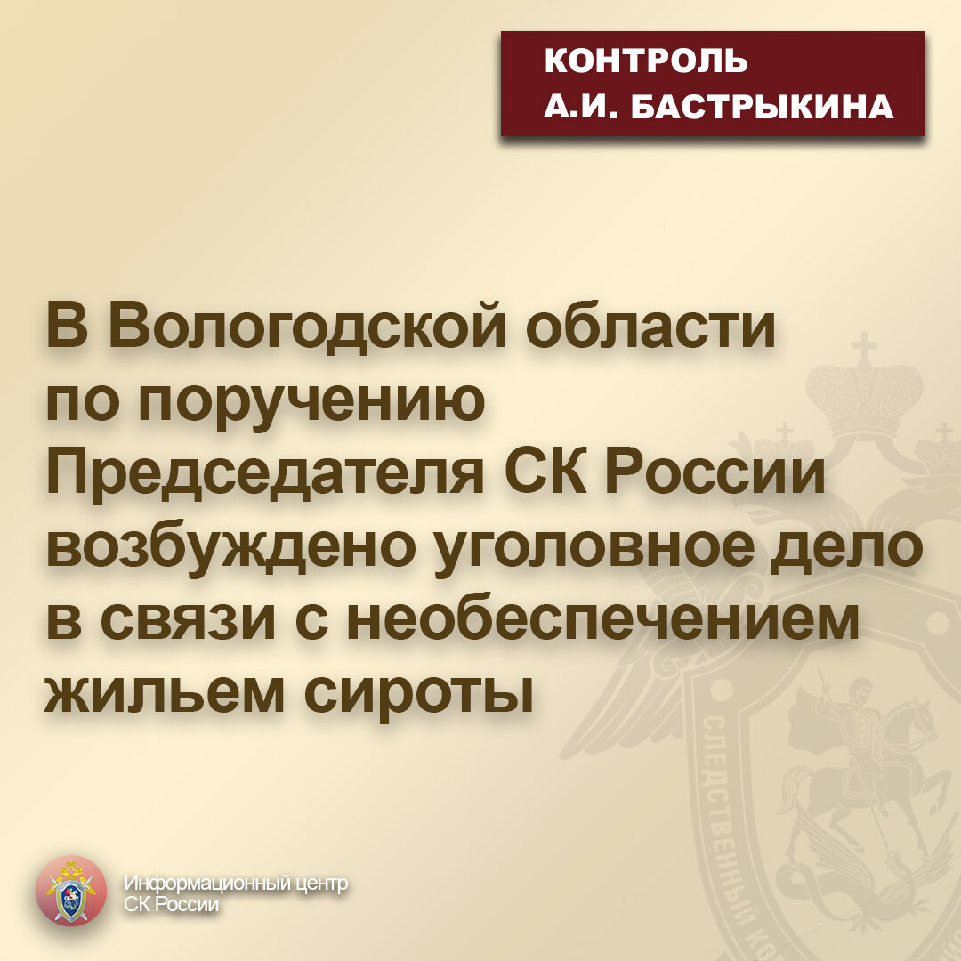 В Вологодской области по поручению Председателя СК России возбуждено уголовное дело в связи с необеспечением жильем сироты