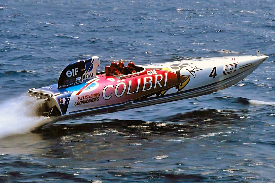 Но сперва – пару слов собственно о катере. «Colibri» (а точнее катер ACX 41`) был построен во французском Бресте на верфи ACX (Ateliers Composites Xavier Joubert) – компания ныне не существует. Судно весом три с половиной тонны было оснащено двумя V-образными двенадцатицилиндровыми двигателями Lamborghini от внедорожника LM002 объёмом 8,2 литра каждый. Моторы форсировали и они выдавали суммарную мощность в районе 2000 лошадиных сил. Длина корпуса составляла 12,5 метров, ширина 2,4 метра. Максимальная скорость 191 км/ч.