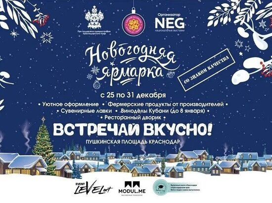 В преддверии Нового года в столице Кубани для краснодарцев и гостей города откроют ярмарку «Со знаком качества», на которой будут представлены местные продукты по доступной цене. Посетить ярмарку можно с 10:00 до 23:00 до 31 декабря, сообщает пресс-служба администрации Краснодара. Участники ярмарки предложат гостям местные сыры, колбасы, кондитерскую продукцию, свежие овощи и фрукты. А виноделы региона представят широкий ассортимент качественных кубанских вин. Их продукцию можно будет приобрести до 8 января. Напомним, ель на Главной городской площади украсили яркими гирляндами и разноцветными новогодними игрушками.