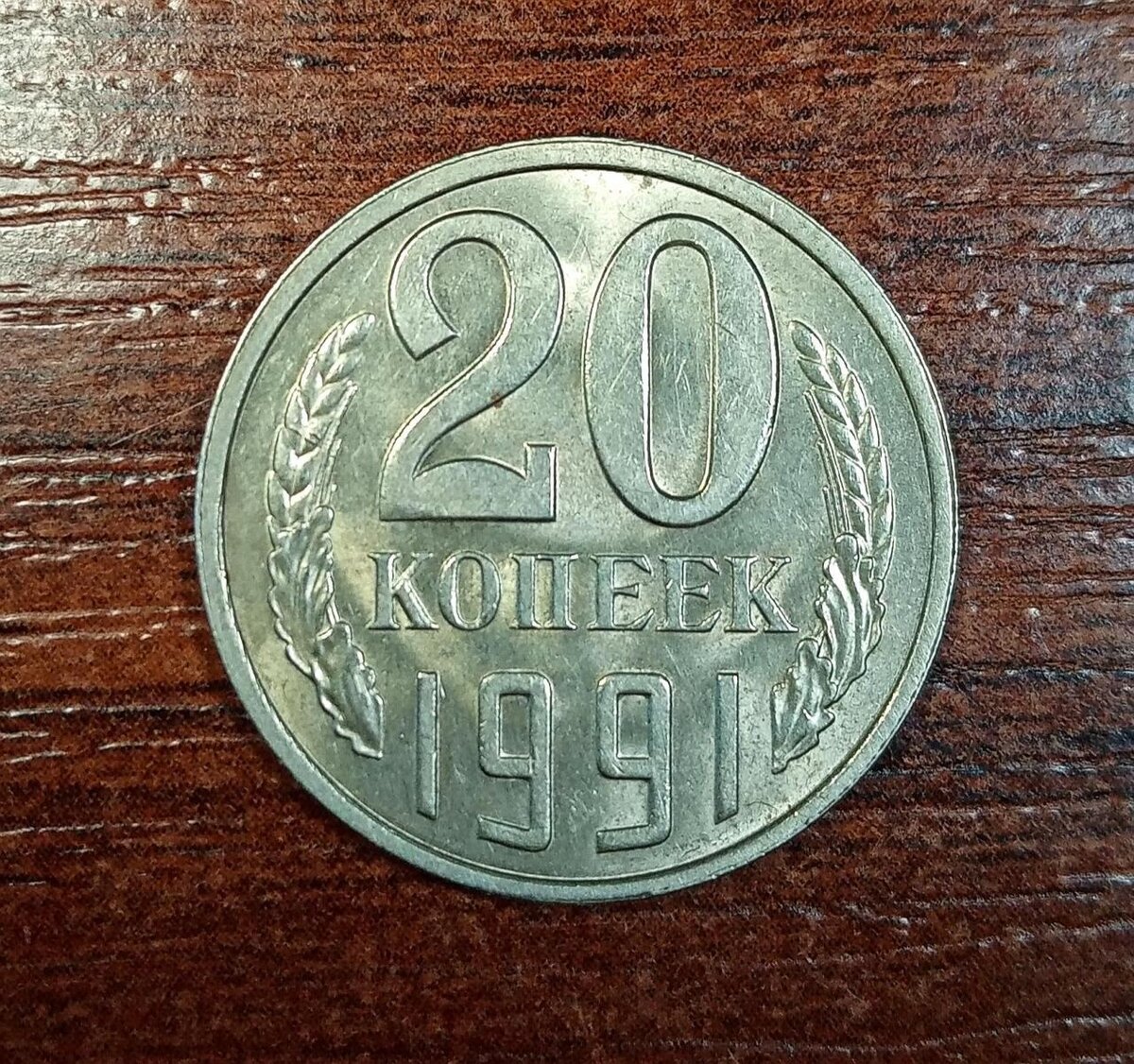 Последние советские монеты весьма интересны. Как всегда, на монетных дворах, если и чеканили, то с размахом. Тиражи даже последних монет СССР были огромными. Да что там говорить... На протяжении всей своей истории Госбанк СССР эмитировал каждый год огромное количество дензнаков в оборот такой большой сверхдержавы, каким и был некогда Советский Союз. Среди всего этого разнообразия дензнаков, а именно монет, ведь мы сегодня монеты рассматриваем... Так вот, среди всего этого разнообразия коллекционеры и нумизматы постоянно ищут свои редкости. Это и монетные пробы, и различные, ранее неизвестные разновидности штемпельных пар, это и браки монетных дворов, их ошибки. Ведь любое предприятие не застраховано от брака. Монетные дворы, не исключение. Хотя отк (отдел технического контроля) и проверяет новые вновь отчеканенные партии, все же брак был и уходил в оборот. Вот такие монеты с ошибками и ищут коллекционеры, в том числе. Перед вами 20 копеек 1991 года. Именно в девяносто первом на монет