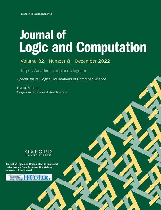 Уважаемые коллеги, доброго времени суток! Представляем вам британское научное издание Journal of Logic and Computation. Журнал имеет третий квартиль, издаётся в Oxford University Press, его SJR за 2021 г. равен 0,522, пятилетний импакт-фактор 0,744, печатный ISSN - 0955-792X, электронный - 1465-363X, предметные области - Теоретические компьютерные науки, Логика, Программное обеспечение, Аппаратная часть и системная архитектура, Культура и искусство. Вот так выглядит обложка: