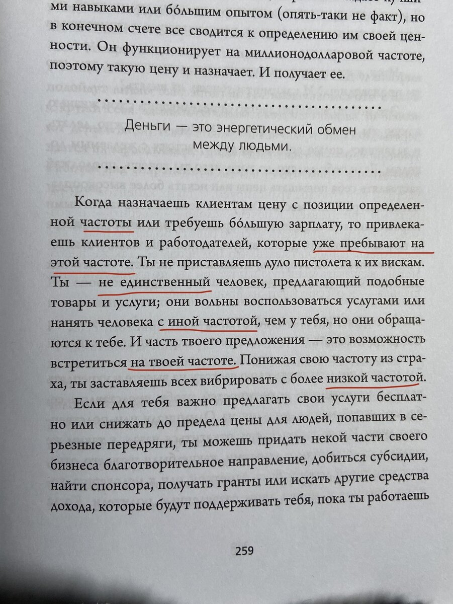 Я не перестану приводить в пример профессию массажиста из книги «ни ссы». Вы можете почитать все на фотографиях. В чем разница этих двух людей? В энергиях. Но вопрос стоит в том, как эти энергии повысить? Дело в том, что наш мир зеркален и мы притягиваем тех людей, которые на таких же энергиях что и мы. И вопрос «Если я подниму стоимость, где я возьму клиентов! Никто же не купит у меня за такую стоимость». А тут я приведу вам мой любимый пример маникюра. Есть те, кто будет ходить по 500₽ за маникюр к мастеру домой и сидеть по 3 часа. Есть те, кто заплатит 1.000₽ и пойдут в какое-нибудь арендуемое помещение и потратят 2 часа на маникюр. Есть те, кто пойдет в салон, заплатит за услугу 2.000₽, сделает маникюр за 1,5 часа, выпьет чаю и насладится. Есть те, кто пойдут в салон, заплатят 3.000₽ за экспресс маникюр за 1 час. Потому что им важно время, скорость и комфорт А есть те, кто ходит только в премиум салон. Им неважно сколько будет стоить маникюр 5, 10, 15 тысяч рубл