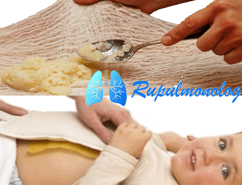 Готовую массу укладывают пластом на марлю, сложенную в несколько раз. Если марли нет, то можно ее заменить тканью. Компресс укладывают на грудь, накрывают полиэтиленовым пакетом, обматывают теплым полотенцем и выдерживают несколько часов. Детям достаточно 2-3 часа. Взрослые могут оставить компресс на всю ночь.