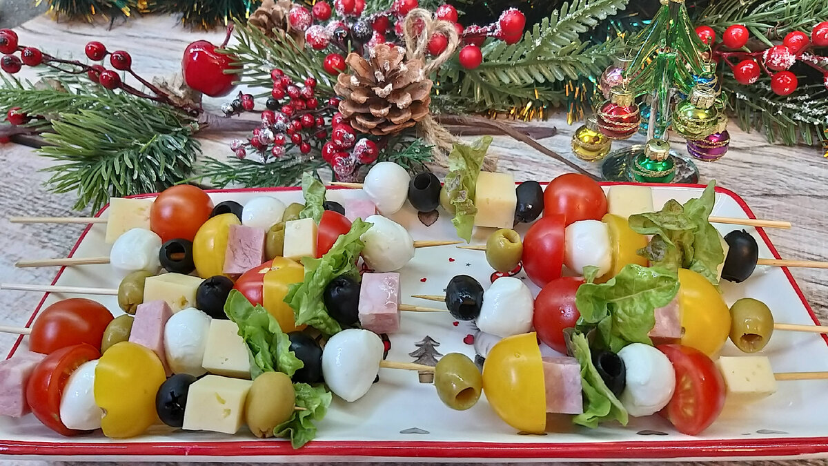 Закуски на новогодний стол 2023 или фуршет. Мини бутерброды на шпажках Очень просто и вкусно!
