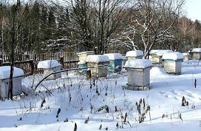 Пчелы хорошо зимуют при относительной влажности воздуха 75–85% и удовлетворительно — при влажности 65–75 и 85–90%. Чрезмерно сухой (ниже 60%) воздух вызывает беспокойство пчел во время зимовки и иногда гибель всего зимне-весеннего расплода. Чтобы этого не случилось пчеловоды развешивают в помещении мокрую мешковину, ставят емкости с водой и снегом или поят семьи из индивидуальных поилок. Лет 15 назад наши пчелы по стечению обстоятельств зимовали на чердаке кирпичного жилого дома. Крыша его была покрыта кровельным железом с редкой обрешеткой, пол утеплен слоем каменноугольного шлака и опилками. Около сорока ульев с пчелами без крыш поставили непосредственно на шлак, утеплив сверху и с боков, образовав бурт. Два чердачных окна занавесили, но полной темноты не добились. Южный скат крыши практически всю зиму находился без снега и хорошо, особенно весной, прогревался солнцем. Наружная температура зимой колебалась от –5 до –32°С, но внутри бурта она всегда была положительной. Волосяной гигр
