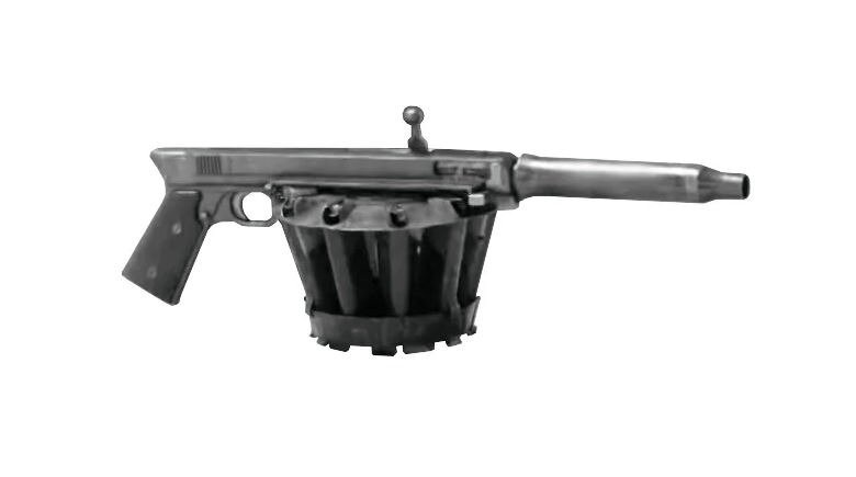 Подписывайтесь на наш новый Дзен-канал "Первый Оружейный"! Ещё больше интересных подборок об оружии в удобном формате! Что ты такое?! Похоже создатель этого чудо-оружия был серьезно замотивирован, если смог довести дело до рабочего образца. Представьте себе – 1918 год, американцу Уильяму Эндрюсу приходит в голову «нетривиальная» идея сотворить нечто страшное. И ему это блестяще удалось – автоматический пистолет с десятью магазинами! За основу был взят еще довольно свежий на то время пистолет Кольт 1911. После месячных потугов мистер Эндрюс представил общественности результат своего титанического труда: чудовище калибра .45ACP, с полным основанием претендующее на роль одного из экспонатов оружейной «кунсткамеры». Десять пистолетных магазинов были объединены в 70-зарядный барабан, свисавший злокачественной опухолью под странной конструкцией, напрочь лишенной каких-либо прицельных приспособлений. Скорее всего, прокручивать барабан приходилось вручную. Стоило ли так издеваться над одним из