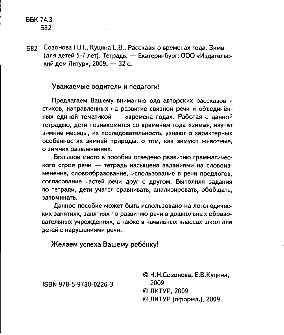 Н. Созонова Е. Куцина ТетрадьРассказы о временах года "Зима"